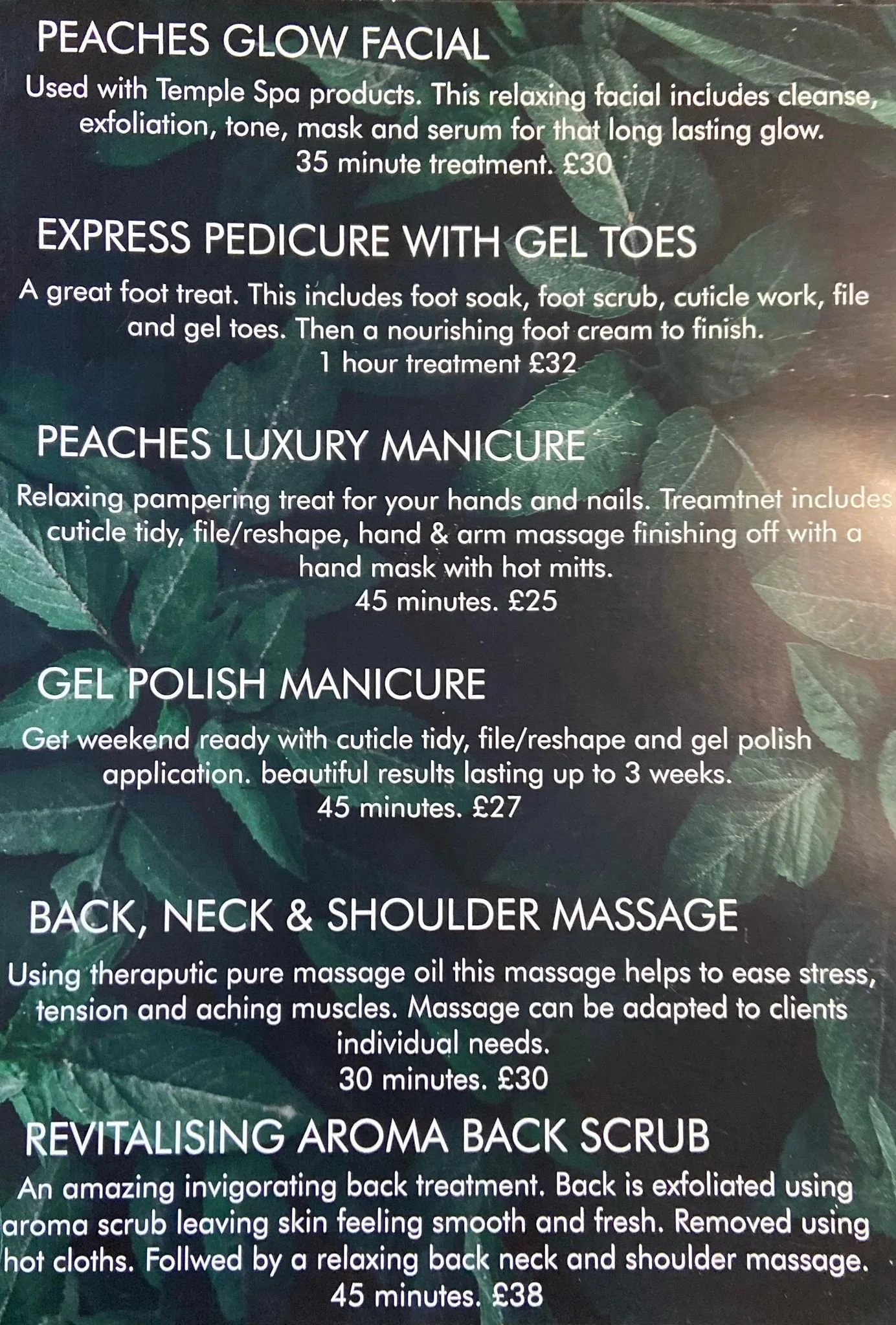 Either way we have got you covered!! We have a number of Beauty Therapists including ourselves who will bring the spa to you! There are a number of treatments you can choose from so there is something to suit everyone. Please see Below our list of treatments.